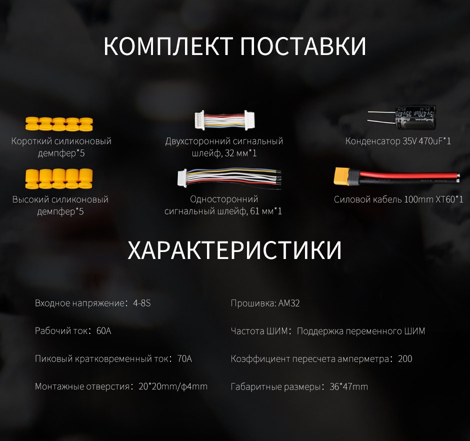 Он также отличается высоким током, высоким выдерживаемым напряжением, низким внутренним сопротивлением и мониторингом температуры в режиме реального времени. Отсутствие рассинхронизации с двигателями с высоким KV.