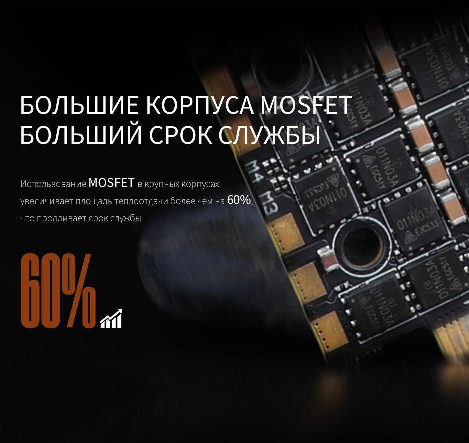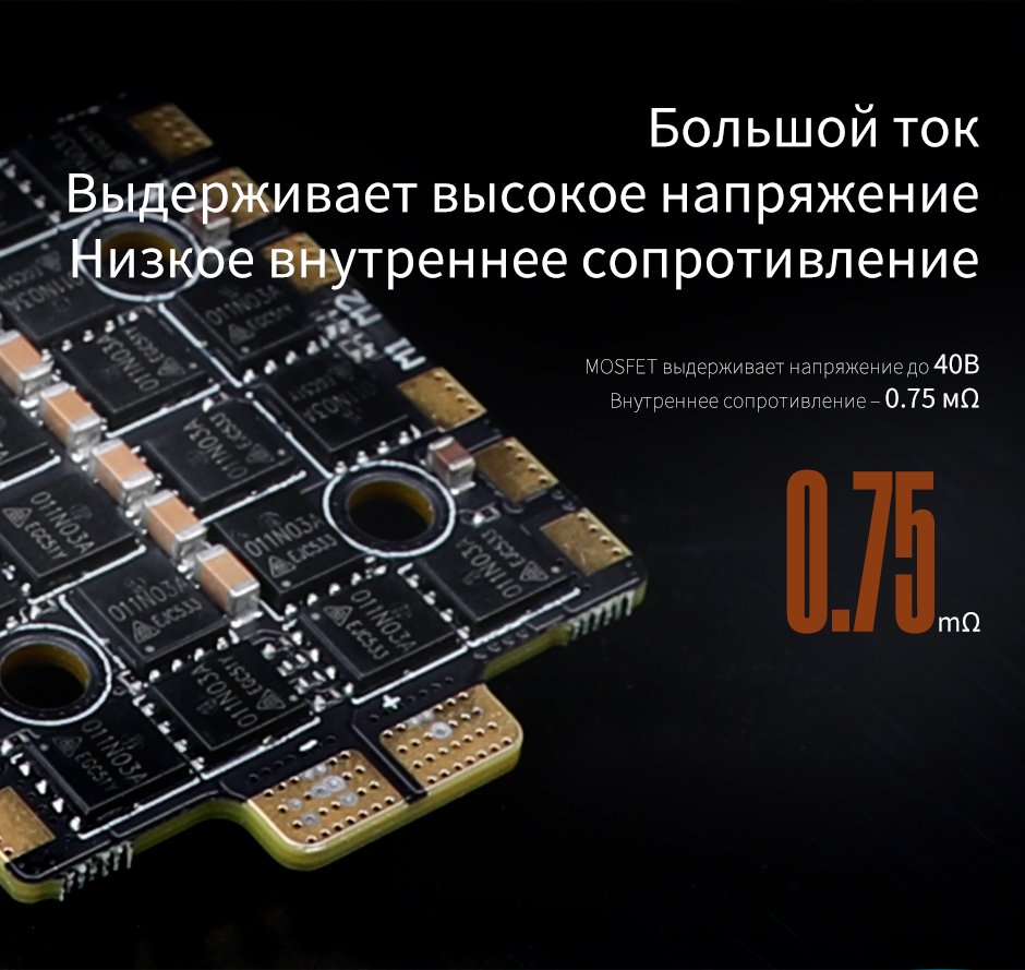 Он также отличается высоким током, высоким выдерживаемым напряжением, низким внутренним сопротивлением и мониторингом температуры в режиме реального времени. Отсутствие рассинхронизации с двигателями с высоким KV.