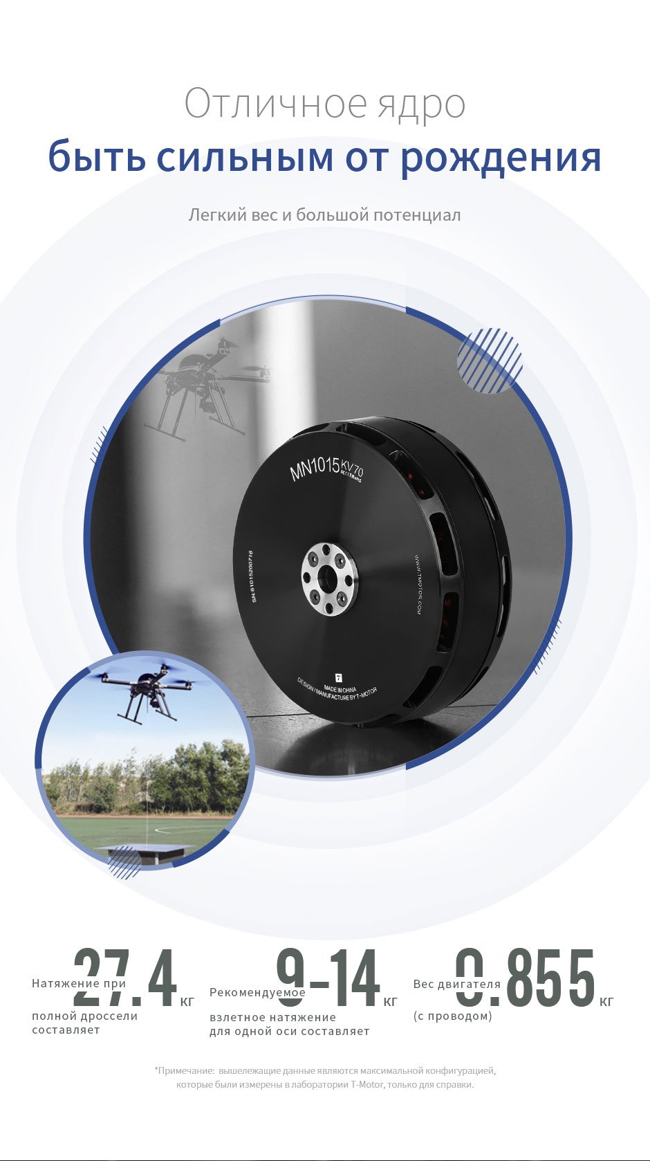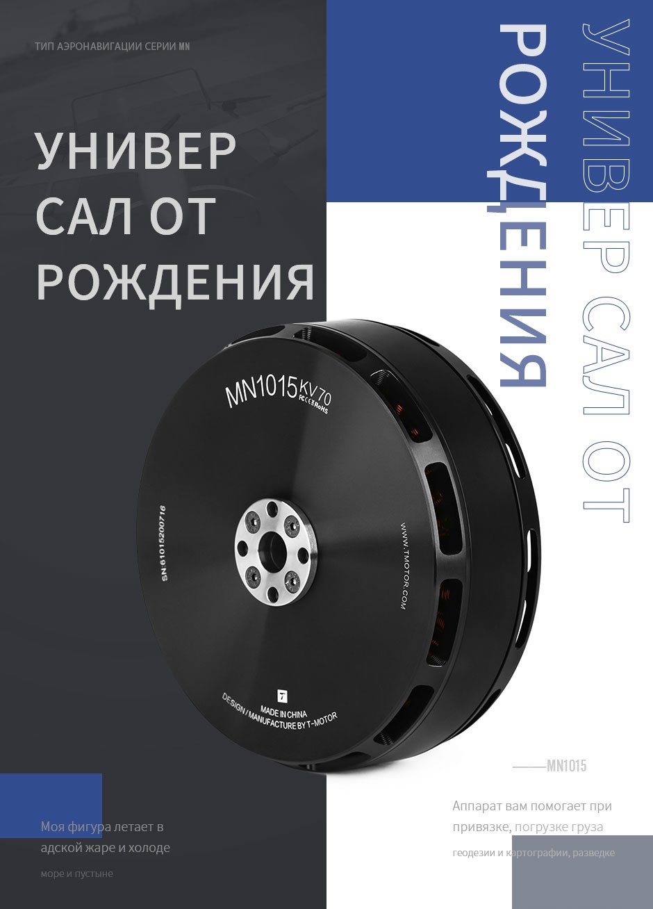 О двигателе T-MOTOR Navigator MN1015 для мультикоптерного БПЛА с фиксированным крылом KV70