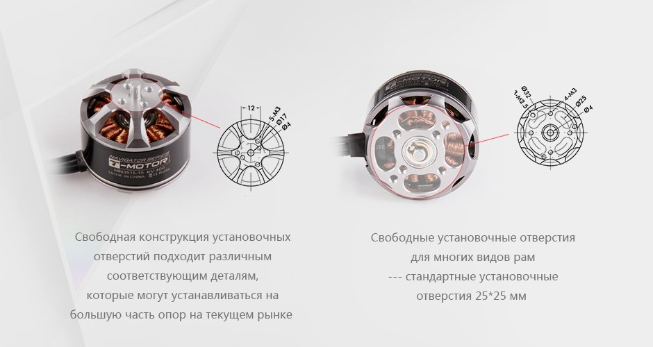 Бесщёточный двигатель T-Motor Navigator MN3515 KV400 разработан для стабильного и высокопроизводительного применения в беспилотных летательных аппаратах. Благодаря увеличенным подшипникам, вдвое превышающим размеры стандартных двигателей, он обеспечивает плавную работу на низких оборотах и надёжную устойчивость рамы под нагрузкой. Самоохлаждающаяся конструкция двигателя повышает эффективность и мощность, что делает его идеальным для многороторных летательных аппаратов, СВВП и беспилотных летательных аппаратов с фиксированным крылом. Обладая максимальной тягой 3,4 кг и средней наработкой на отказ около 1000 часов, MN3515 обеспечивает исключительную сбалансированность и долговечность. Для оптимальной производительности и долговечности рекомендуется регулярная смазка подшипников.