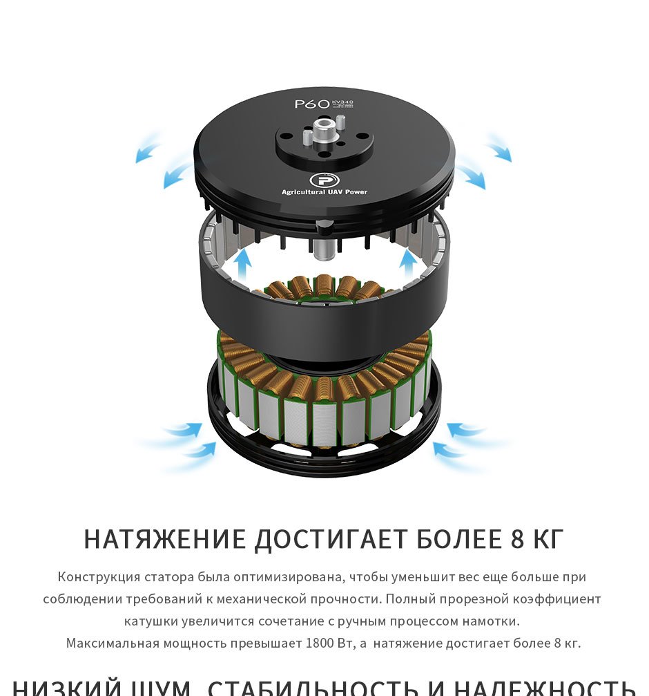 С развитием стандартизации в сегменте беспилотных летательных аппаратов требования пользователей стремительно растут. Компания T-MOTOR, всегда стремившаяся к созданию «самой безопасной силовой установки», представляет двигатели P-SERELS для сельскохозяйственного применения, отличающиеся высокой тягой и производительностью, прошедшей всесторонние испытания. Двигатели серии P способны работать в сложных условиях, обеспечивая надежность и длительный срок службы.