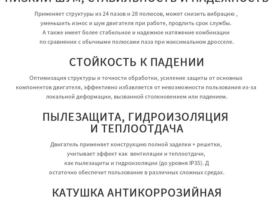 Оптимизированная точность обработки и конструкция двигателя с защитой сердечника эффективно предотвращают отказы двигателя после падений и ударов.