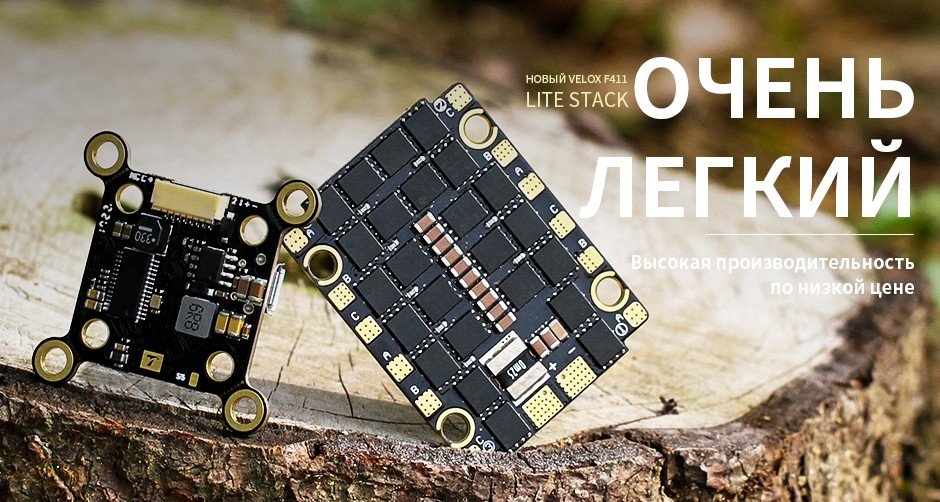 VELOX Lite F411 Stack — полётный контроллер F411 Lite + ESC V45A Lite (3–6S, компактный)